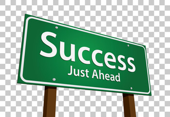 Success Just Ahead Green Road Sign Vector Illustration on A Transparent Background.