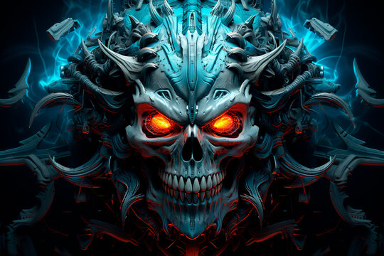 An awe-inspiring dragon with fiery eyes boldly reveals its face amidst a backdrop of rugged rock formations in a mysterious, shadow-filled cave environment.