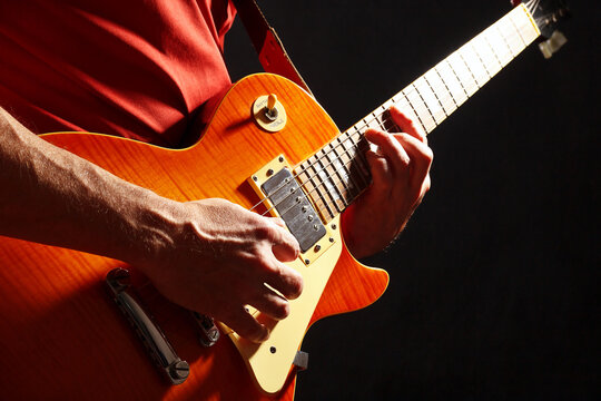 Male hand shows the gesture of goat, rocker goat, horns on a yellow background. Hand gestures