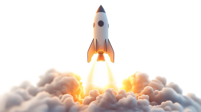 rocket space ship take off isolated on a transparent or white background