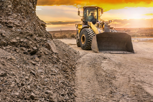 Landslide, rockfall on the road, dust and stones in the air. The concept of natural disasters