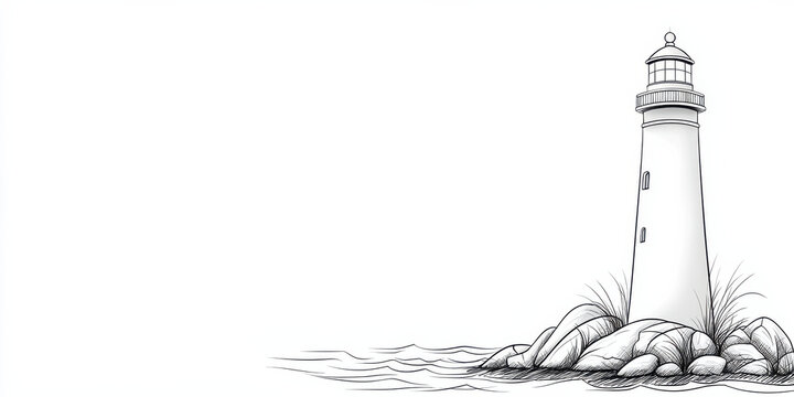 lighthouse stands on rocky shore with gentle waves nearby