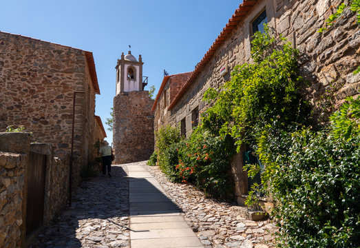 Old stone houses and narrow street in the ancient town of Castelo Rodrigo in Portugal