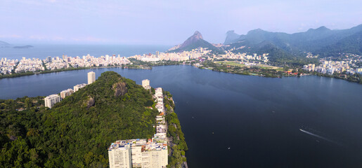 Aerial view of seawater lake Rodrigo de Freitas Lagoon (Lagoa) in city of Rio de Janeiro - landscape panorama of Brazil from above, South America