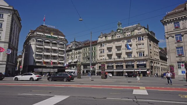 Lucerne City Center with Bucherer, Gübelin, and Credit Suisse.Captured on July 15,2025.