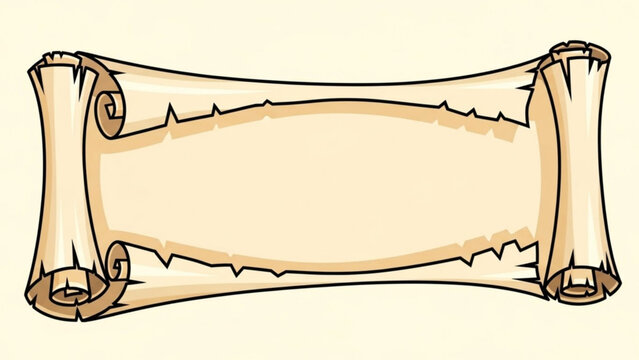 Blank cartoon parchment scroll banner with aged edges and rolled ends perfect for ancient map titles or historical announcements in a light background setting