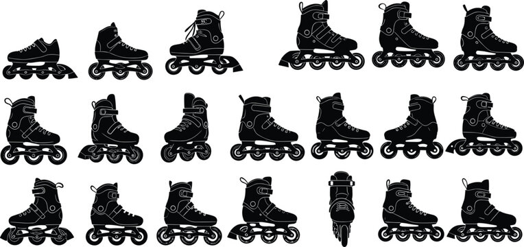 Rollerblade silhouette collection, inline skate vector icons, black skate boot illustration set, sports gear symbol, skating equipment clipart
