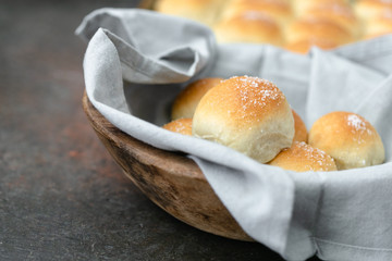 Homemade Dinner Rolls in Wooden Bread Basket