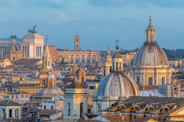 Scenic panorama of Rome with Colosseum and Roman Forum, Italy.