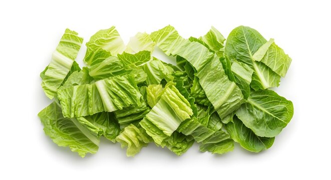 Freshly Chopped Romaine Lettuce Leaves on White Background