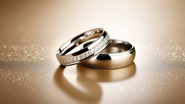 Wedding, gold wedding rings on a white background, close up, created with Generative AI technology