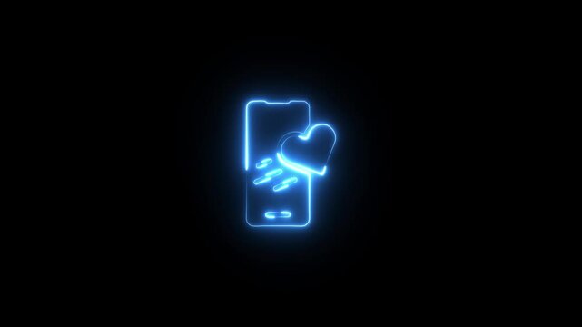 The appearance of the green neon symbol book heart. Flicker, In - Out.