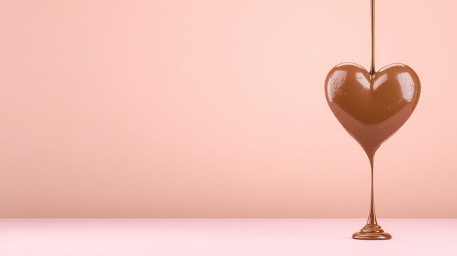 Heart-shaped chocolate drizzle pouring on pink surface food photography sweet treats romantic dessert close-up view