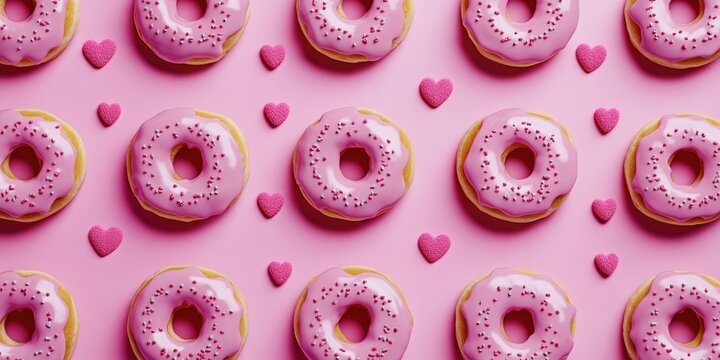 This is a delightful assortment of heart-shaped donuts with colorful sprinkles. They are perfect for a romantic occasion or as a playful snack.