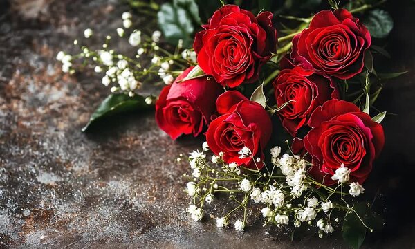 Festive table setting with elegant wine glasses and beautiful red roses on a Valentine's Day background