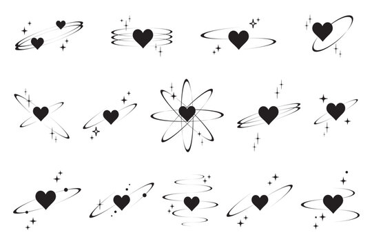 two hearts pierced by arrow drawn in symbolic romantic minimalist line art