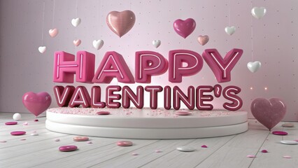 Elegant script lettering wishing 'Happy Valentine's Day' surrounded by decorative hearts on a soft pink background, ideal for romantic celebrations and greetings