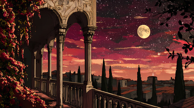 Original balcony of romeo and juliet under a starry verona sky, verona, italy, romeo and juliet, balcony. Shadowspire. Illustration