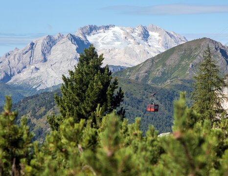 Mount Matmolada and rope way, Dolomites mountains, Italy