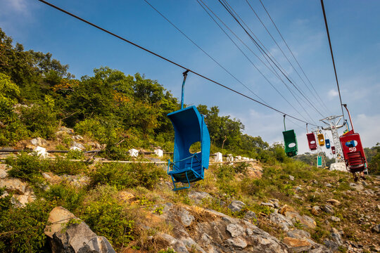 Rope way to Karni Mata Temple, Udaipur City, Rajasthan, India