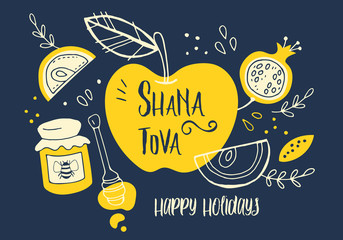 Happy rosh hashanah greeting with apple illustration