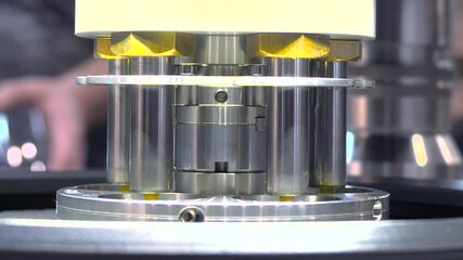 Industrial tablet pressing. HDR. Rotating machine with pressing dies in industrial enterprise. Modern rotary machine with for pressing tablets