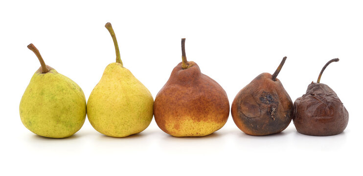 Life circle of apple fruit from fresh to rotten isolated on white background
