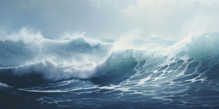 A sailboat navigating a towering wave during a stormy sea in an intense, dynamic atmosphere