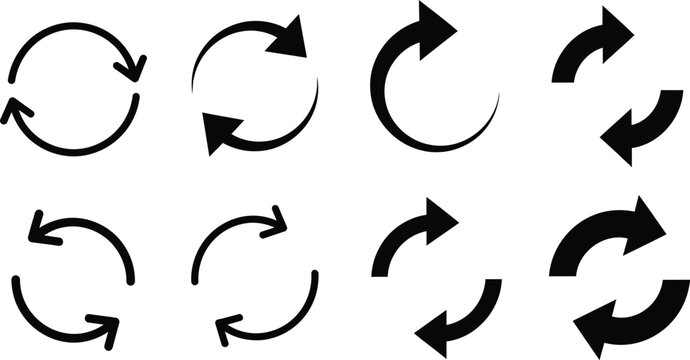 Collection of simple black circular arrows indicating rotation and refresh on a clean white background