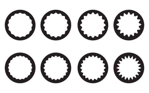Wavy Edge Zigzag circle stroke icon set, Hollow Circle Stroke Icon set of  8 icon, Isolated on a white background.