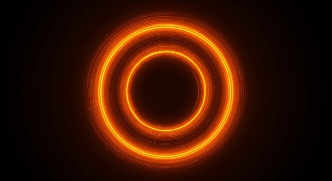 Abstract Glowing Orange Circle Ring Light on Black Background