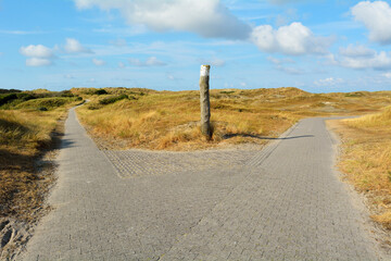 Forked Path through the Dunes to the Beach, Summer, Norderney, East Frisia Island, North Sea, Lower Saxony, Germany