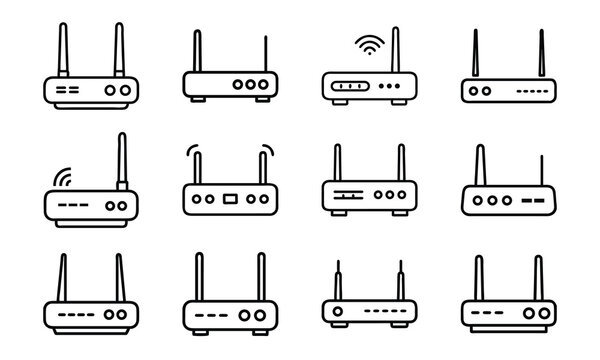 Vector illustration of various modern wireless internet router icons against a clean white background.