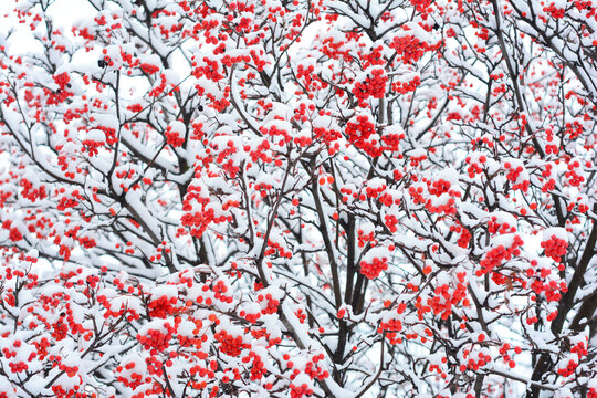 Retro illustration of a mountain landscape with autumn leaves and a rowan tree
