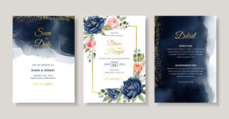 wedding invitation set with beautiful floral garden watercolor frame