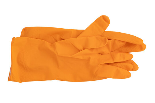 Yellow rubber glove for cleaning and protection isolated on transparent background