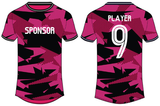 Camouflage Sports jersey t shirt design Flat sketch illustration, Round neck football jersey concept with front and back view for Cricket, soccer, Volleyball, Rugby, tennis and badminton uniform kit