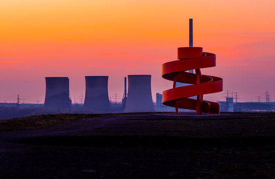 Landmark in Hamm Westfalen in the Ruhrgebiet at sunset in front of a power plant