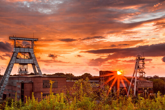 Zeche Ewald bei Sonnenuntergang mit Sonnenstern