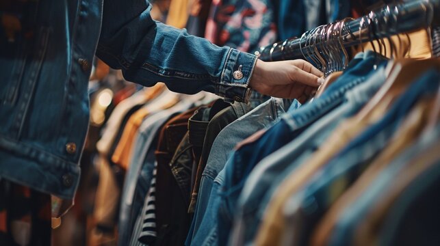 Adorable teddy bear in box with clothes for community rummage sales on blurred background