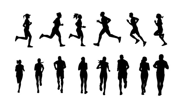 set silhouettes of people running pose