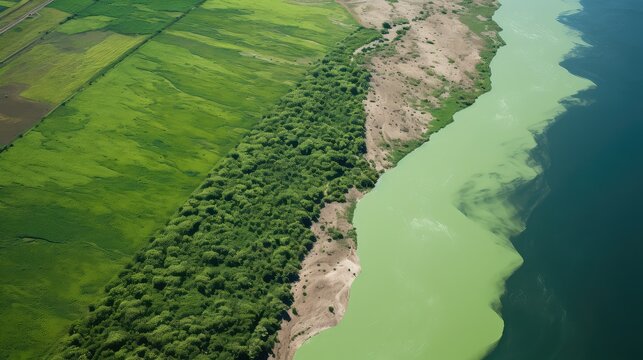 Aerial Insight into the Devastating Effects of Agricultural Runoff on Aquatic Ecosystems - AI Generative