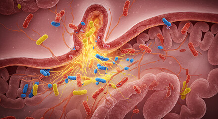 Hypertension, atherosclerosis, and cerebral blood vessel rupture lead to cerebral hemorrhage and stroke. 3D medical animation