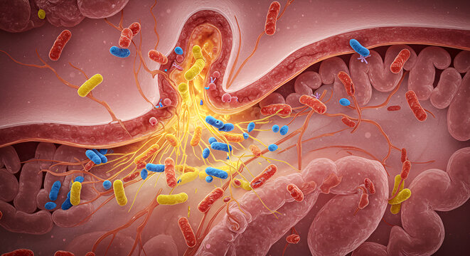 Closeup of a chaotic burst of energy as the nucleus rupture into smaller fragments, creating a beautiful display of vibrant lights.