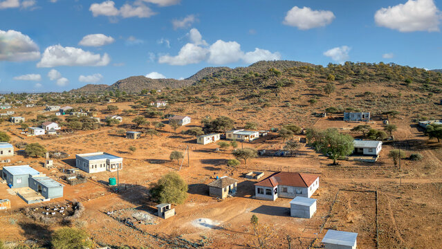 aerial view african village , typical Southern african rural area village Botswana, South Africa