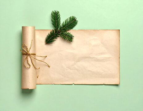 Scroll of Old Paper with Christmas Composition and New Year Car