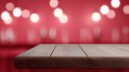A wooden table surface with a blurred red background and soft glowing lights. The scene conveys a warm and inviting atmosphere, suitable for dining or celebrations.