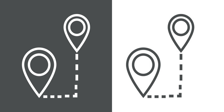Icono plano con hoja de ruta con línea de puntos entre marcadores de posición en fondo gris y fondo blanco
