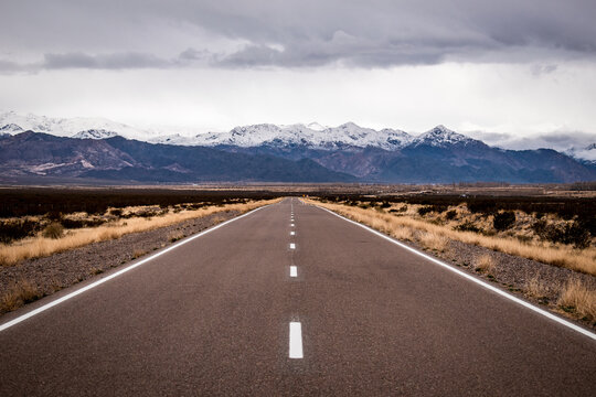 Bella ruta de asfalto por la cordillera de los Andes, en Mendoza, Argentina