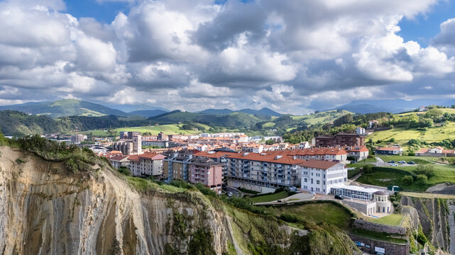 Scenic elevated view of Zumaia and coastal cliffs in Basque Country